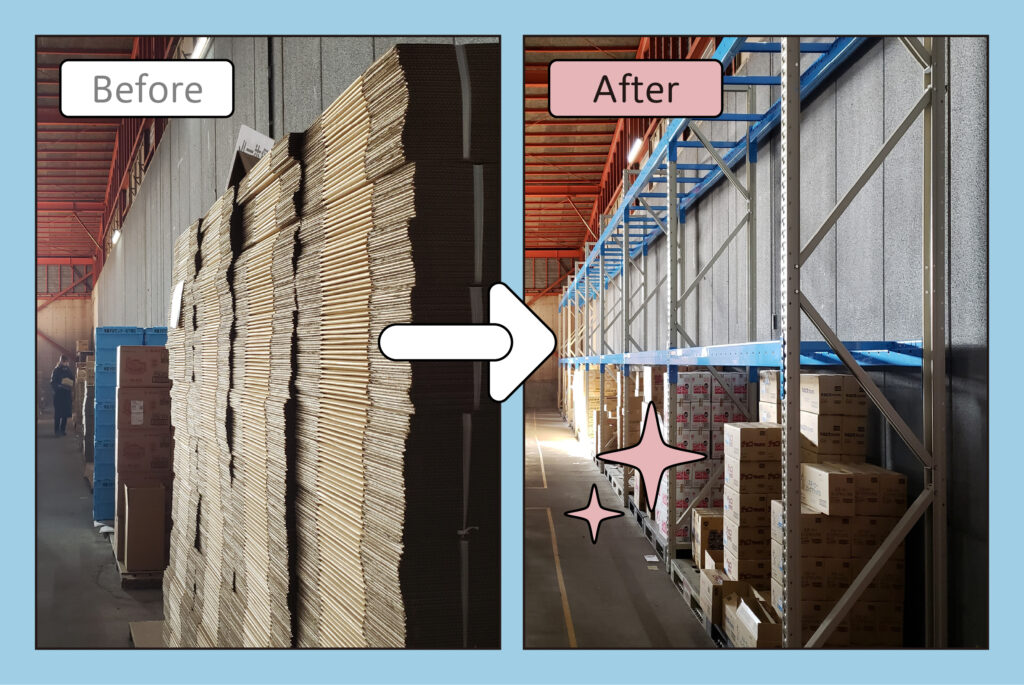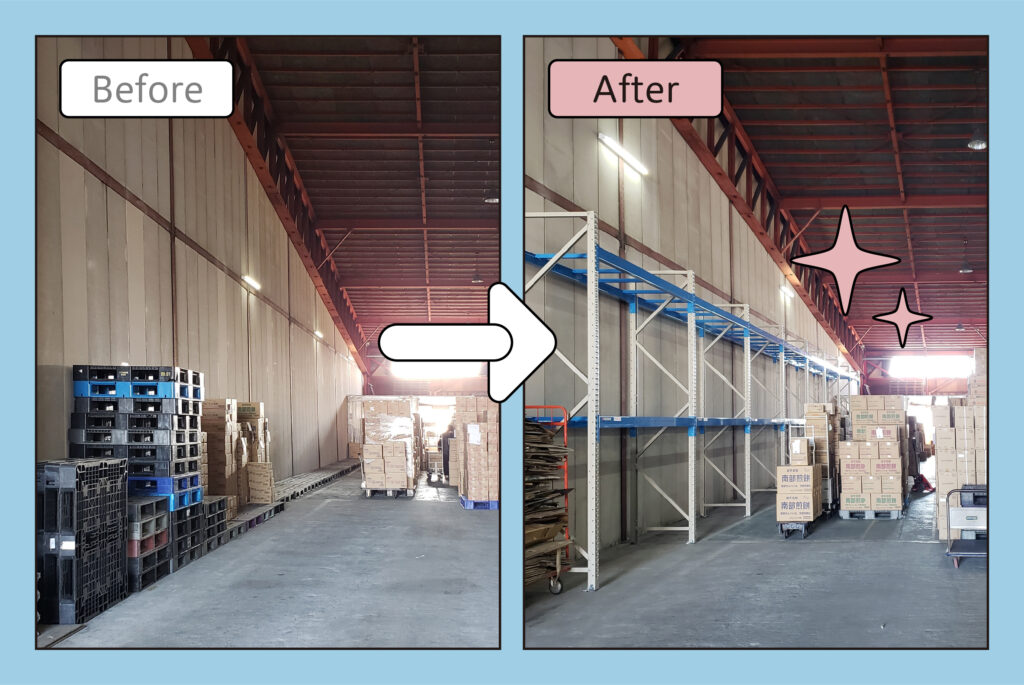 【例】倉庫の上部空間を有効利用するため、ラックを導入